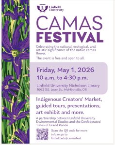 FREE Event open to all. Celebrating the cultural, ecological, and artistic significance of the native camas flower. Includes an Indigenous Creators’ Market, guided tours, presentations, art exhibit and more.