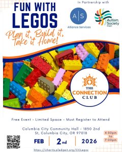 The Connection Club hosts Fun with Legos “Plan it, Build it, Take it Home!” in partnership with Alliance Services and Autism Society of Oregon.