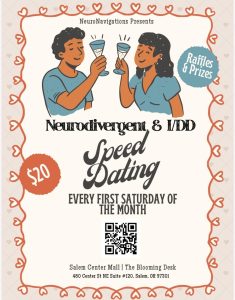 NeuroNavigations presents Neurodivergent and I/DD Speed Dating. The first Saturday of every month. Raffles and prizes. $20.